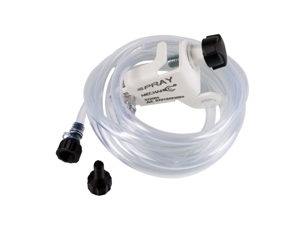 Plastová hadička systému Spray 115-125 má univerzálny konektor, ktorý možno pripojiť k väčšine záhradných postrekovačov.