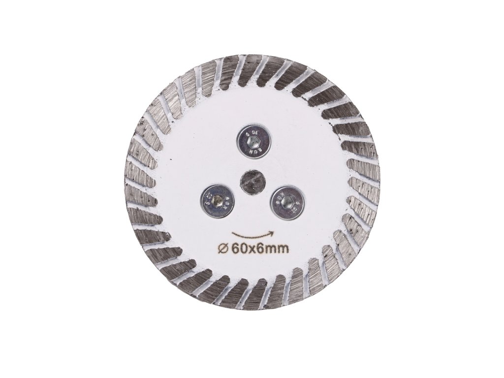 Kotúč sa montuje na uhlové brúsky s priemerom 115 mm alebo 125 mm. Má vonkajší priemer 60 mm a uchytenie M14. Používa sa bez chladenia.