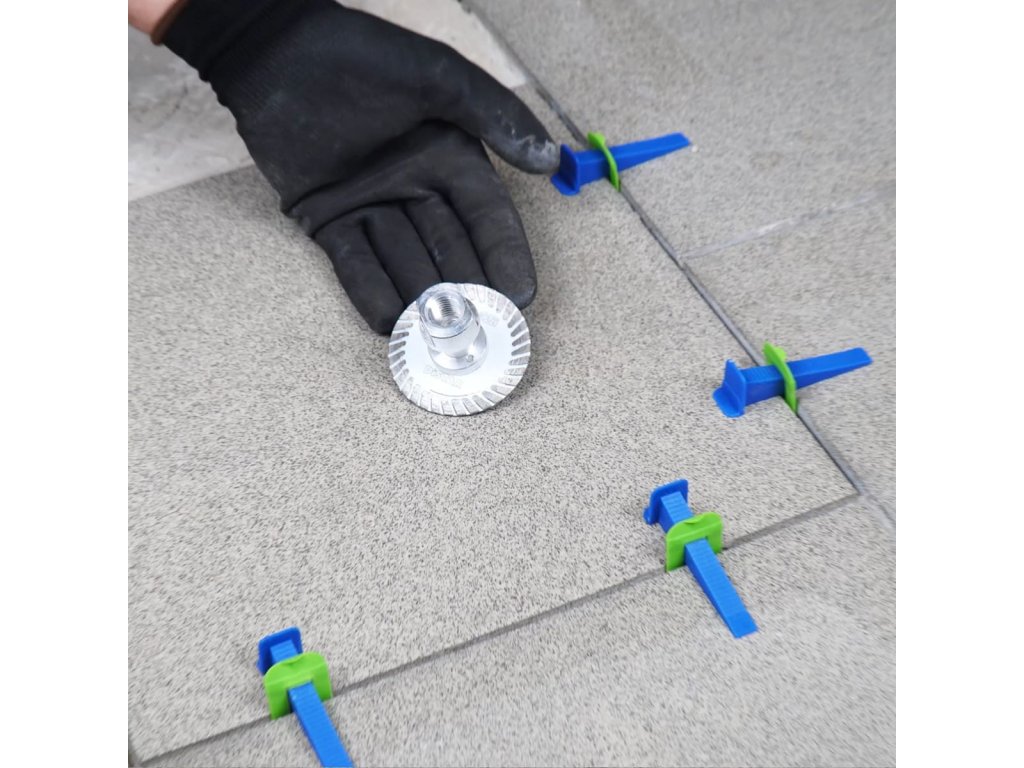 Pri inštalácii nivelačných systémov na obklady je často potrebné orezať zatuhnuté lepidlo medzi dlažbou a podkladom.