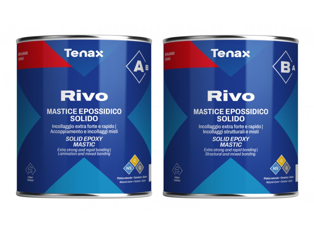 Extra silné epoxidové tuhé dvojzložkové lepidlo na lepenie a tmelenie žuly, mramoru, kameňa, aglomerátov aj keramiky. Lepidlo má béžovú farbu. Je odporúčané na použitie v interiéri aj exteriéri. Lepidlo má výborné mechanické vlastnosti a odolnosť voči poveternostným vplyvom. Doba vytvrdnutia je pri 25 °C približne 15 minút. RIVO je vhodné aj na lepenie kombinácií rôznych materiálov: kameň+kameň, kov+kameň, betón+kov, keramika+kameň, kameň+kompozitné materiály. Povrch kovu by mal byť pred aplikáciou zdrsnený. Na zafarbenie lepidla je možné použiť univerzálne farbiace pasty Tenax alebo oxidy kovov.