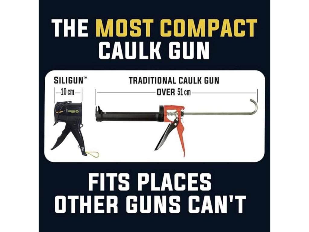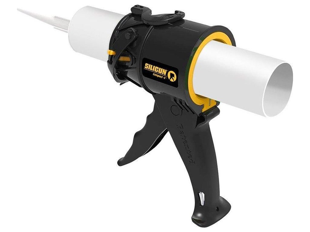 Siligun Compact 4 je patentovaná silikónová pištoľ vyrobená z odolného, ale ľahkého ABS plastu. S dĺžkou iba 10,2 cm a hmotnosťou 283 g je najkompaktnejšia pištoľ na trhu – ľahko sa zmestí do každého kufra s náradím.