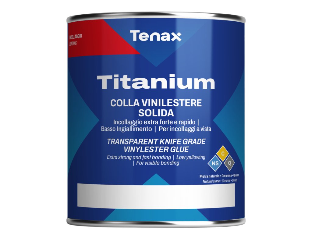 Tuhé extra transparentné vinylesterové lepidlo na lepenie žuly, mramoru, kremeňa, aglomerátov aj keramiky v interiéri. Lepidlo je veľmi rýchle, má mimoriadne číry odtieň, veľmi nízku mieru zožltnutia a je dobre leštiteľné. Možno ho dofarbovať. Ľahko sa nanáša a rozotiera. Konzistencia lepidla zostáva tuhá aj po pridaní tužidla. TITANIUM EXTRA CLEAR má výbornú priľnavosť v krátkom čase, čo umožňuje manipuláciu s kameňom už po veľmi krátkej dobe, a to aj pri nízkych teplotách.